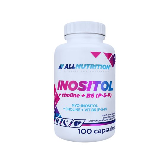ALLNUTRITION Inositol + Colina + B6 (P-5-P) é um suplemento alimentar que combina mio-inositol, d-quiro-inositol, colina e vitamina B6 ativa.