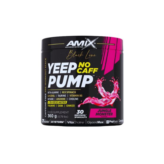 O Amix Yeep Pump Linha Preta é um pré-treino de última geração, desenvolvido para atletas que procuram maximizar o desempenho sem recorrer a estimulantes como a cafeína. A sua fórmula combina ingredientes-chave para aumentar o fluxo sanguíneo, resistência e foco mental, permitindo treinos mais intensos e consistentes. Com uma potente matriz de arginina, beta-alanina e compostos nootrópicos como GABA, L-teanina e Ginkgo Biloba, este suplemento promove um equilíbrio ideal entre energia física e concentração mental. A presença de vitamina B6 contribui ainda para a redução do cansaço e fadiga, tornando-o uma solução estratégica para sessões exigentes.